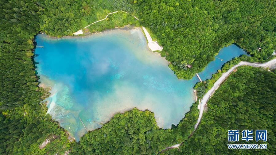 8月2日无人机拍摄的九寨沟景区内的五花海。 新华社记者 薛晨 摄