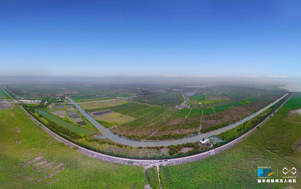 图为航拍上海崇明岛的团结沙农场。新华网 吴恺 摄