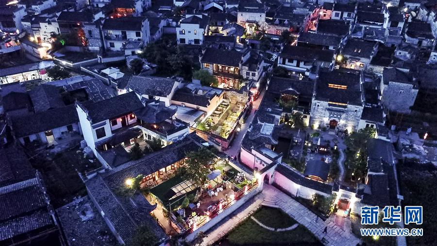 这是5月8日无人机拍摄的安徽黟县宏村古民居夜景。
