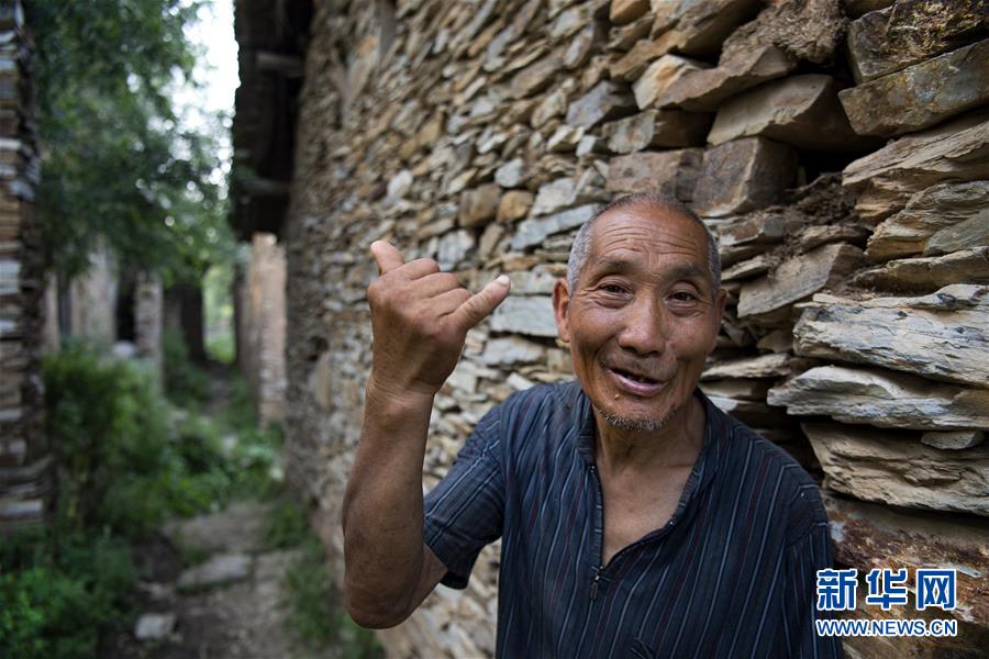 63岁的刘长锁老人生于斯长于斯,整个村落仅他一人(8月7日摄)。他的孩子2014年搬进山下的新居。 新华社记者陶明摄