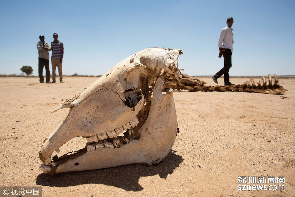 当地时间2017年3月15日,索马里哈尔格萨附近的Baligubadle村,当地遭遇严重干旱。此前媒体报道称,索马里正在遭受旱灾,该国半数人口、大约620万人受到影响。旱灾也造成严重的食物短缺。