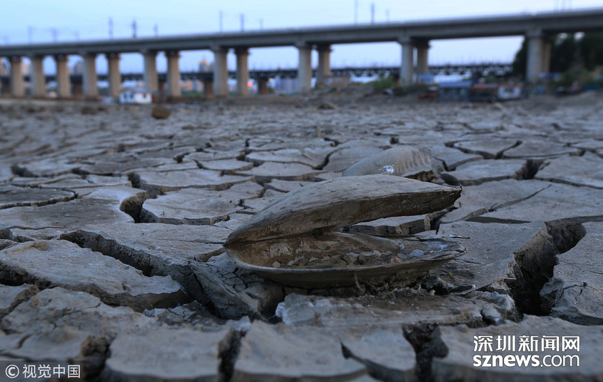 2018年5月26日,黑龙江省哈尔滨市,5月份松花江哈尔滨段最低水位113.64米,是自2008年以来的最低水位。低水位持续之下,松花江江水枯瘦,江北不少江岔子已经干涸,渔船搁浅在岸上,河蚌、小鱼枯死在泥滩中。