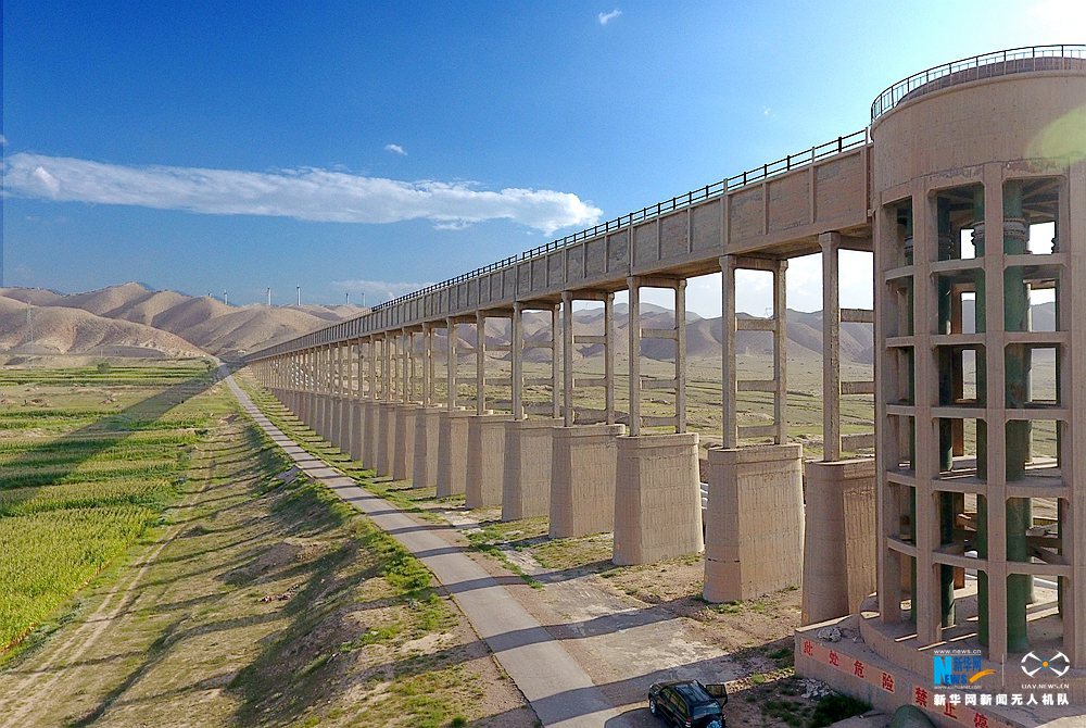 宁夏红寺堡扬水工程黄河泵站出水渡槽。新华网 于晶 摄
