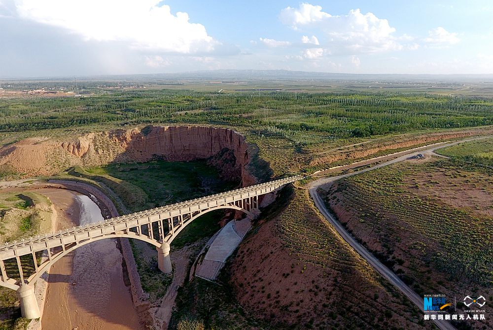 宁夏红寺堡扬水工程三干渠红沟输水渡槽。新华网 于晶 摄