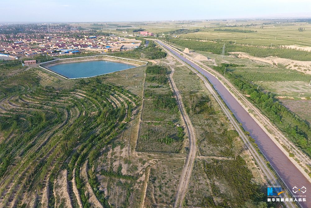 宁夏红寺堡扬水工程三泵站压力管道和岀水渡槽。新华网 张洁龙 摄