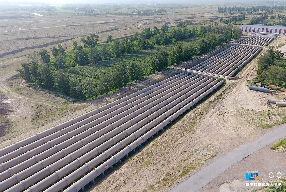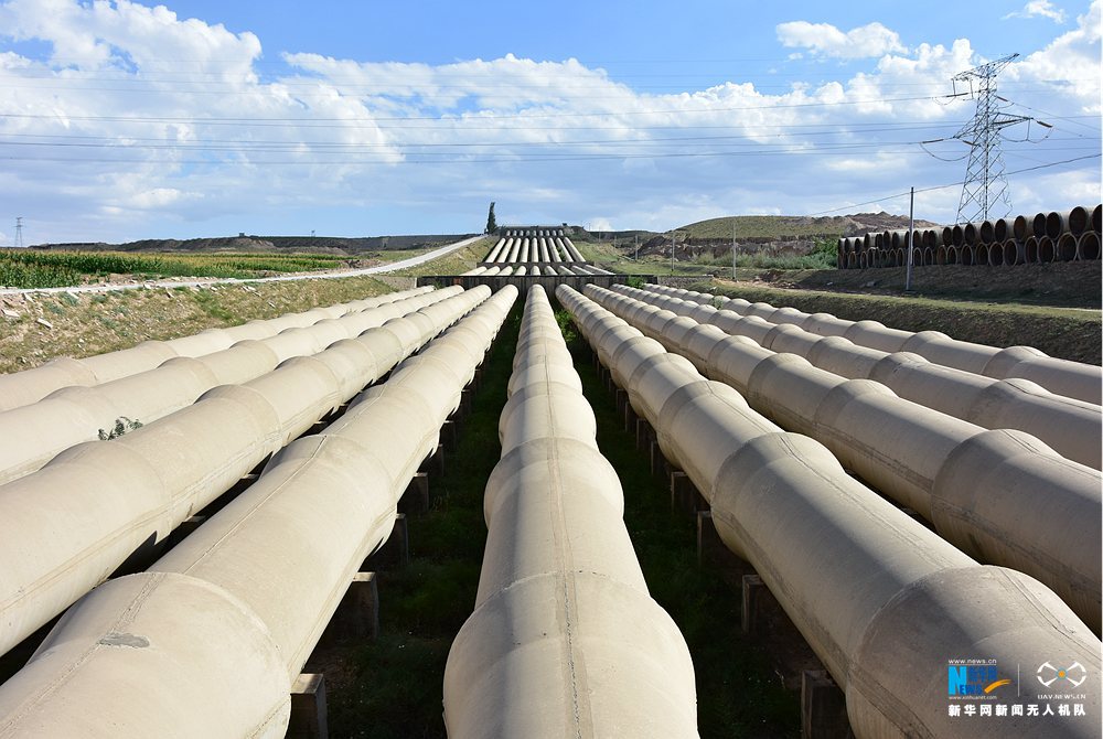 宁夏红寺堡扬水工程三泵站压力管道。新华网 张洁龙 摄