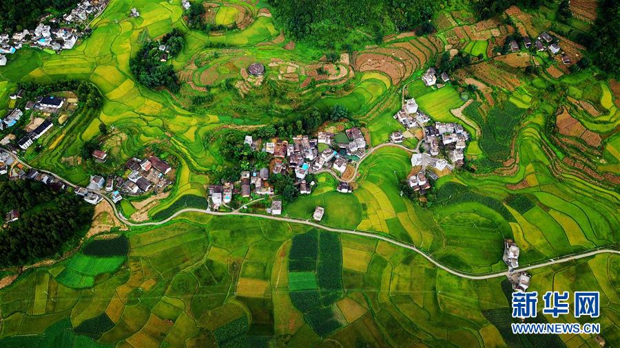 广西隆林各族自治县克长乡田园景色(9月1日无人机拍摄)。