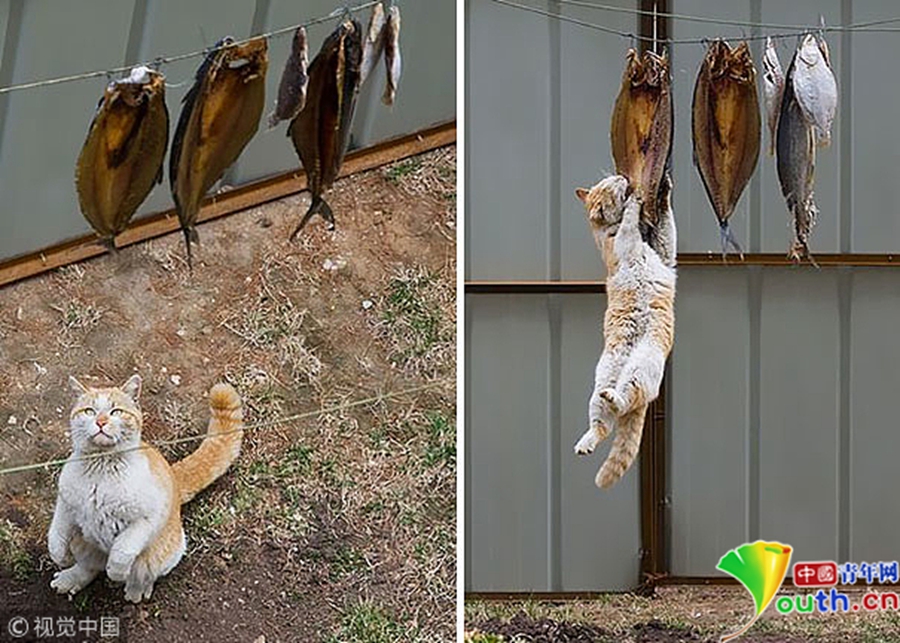 2014年10月8日消息(具体拍摄时间不详),对于碰触不到的东西,拥有强大好奇心的猫咪也从不放弃。