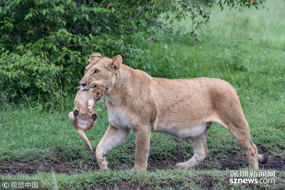 深圳新闻网讯  英国野生动物摄影师Paul Goldstein在肯尼亚的马赛马拉拍到了一头小狮子被妈妈教训的场面。画面中,小狮子正欢快地在草丛穿行,任凭妈妈唤了几次都无动于衷。为了把小狮子带到安全地带,母狮咬住小狮子的颈部,霸气地将其叼在嘴巴里,小狮子一下安分起来,任由母狮带着活动。Paul说:“把人类的情感和表达方式加给动物是不对的,但毫无疑问,这位母亲对小狮子的调皮很不满意。它唤了几次,幼崽都拒绝服从它的命令。这个地方前一晚下了雨,母狮一天的大部分时间都会盯紧自己的孩子,避免它们遭遇危险,而一直呆在潮湿的灌木丛中,又是这些小家伙不喜欢的。最终,母狮走向小狮子,直接叼起来放回了灌木丛里。”