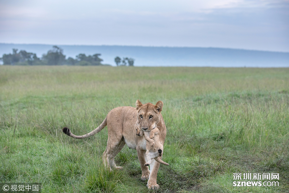 英国野生动物摄影师Paul Goldstein在肯尼亚的马赛马拉拍到了一头小狮子被妈妈教训的场面。