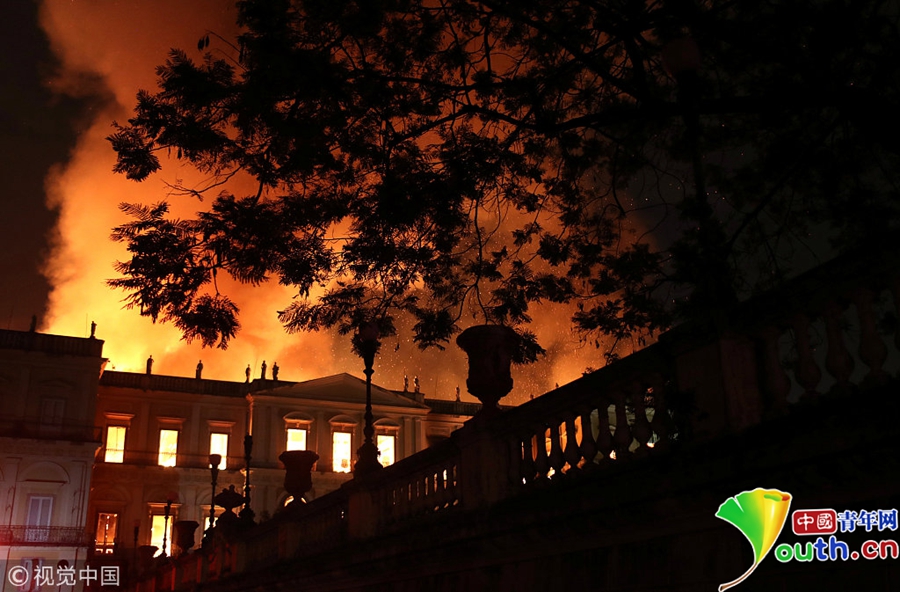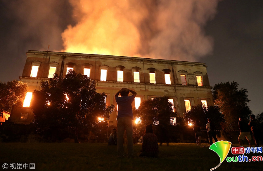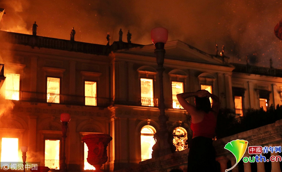 当地时间9月2日晚,巴西里约热内卢一座有着200年历史的博物馆发生大火。当地电视台的画面显示,大火已经蔓延到大楼的所有地方。