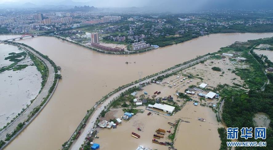 这是9月18日在广东省阳江市阳春市拍摄的水浸情况(无人机拍摄)。 新华社记者张加扬摄