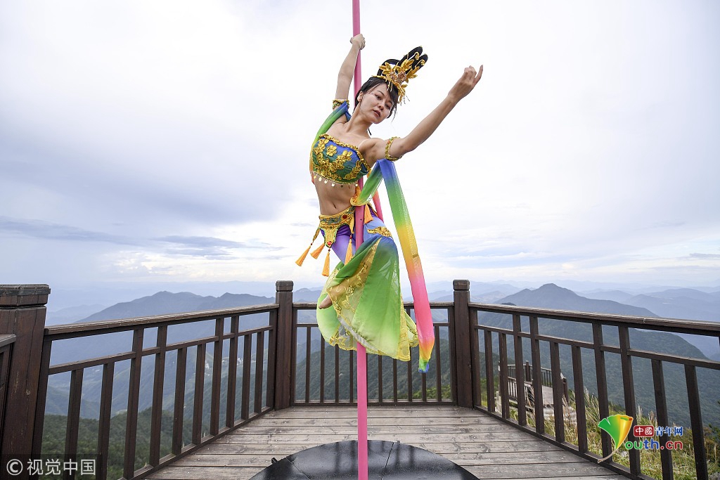 长三角第一高峰上演高空钢管舞 舞者 ...