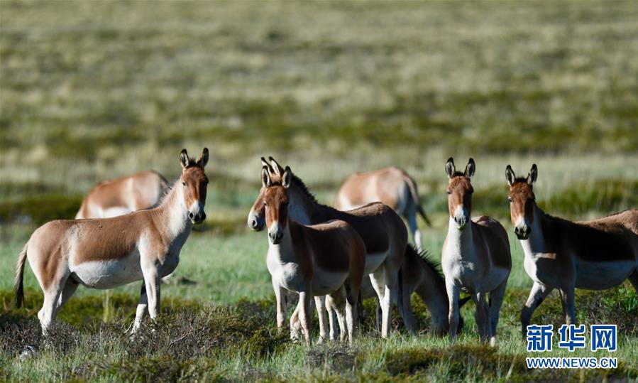在西藏阿里地区境内拍摄的国家一级保护动物藏野驴(9月8日摄)。 阿里地处西藏西部,平均海拔4500米以上,面积30多万平方公里,羌塘国家级自然保护区几乎涵盖整个阿里地区,是众多野生动物生活的乐园。 新华社记者 普布扎西 摄