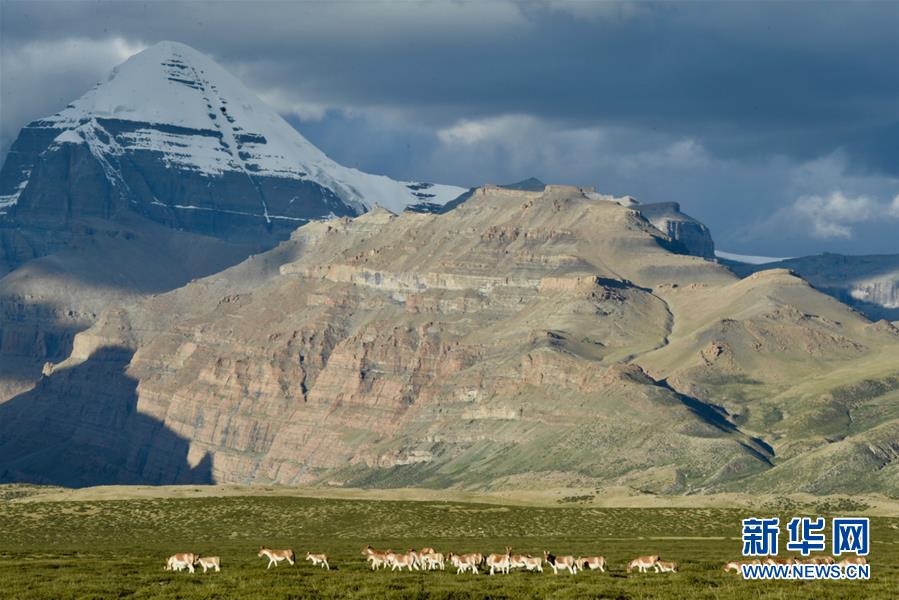 在西藏阿里地区冈仁波齐峰脚下的国家一级保护动物藏野驴(9月11日摄)。 阿里地处西藏西部,平均海拔4500米以上,面积30多万平方公里,羌塘国家级自然保护区几乎涵盖整个阿里地区,是众多野生动物生活的乐园。 新华社记者 普布扎西 摄