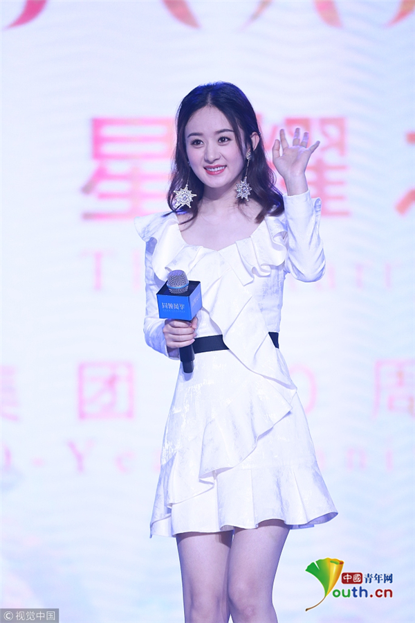 赵丽颖荷叶边连衣裙亮相 甜美迷人