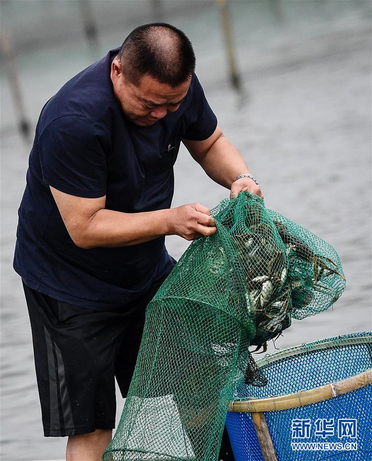 9月21日,蟹农在阳澄湖捕捞大闸蟹。新华社记者李响摄