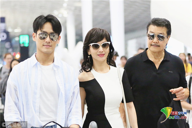 2018年9月25日晚,深圳,刚参加完央视秋晚的赵雅芝携老公黄锦燊及儿子黄恺杰抵达深圳宝安机场,超高颜值的一家人所致之处频频引起侧目,其子黄恺杰自推行李车,俊朗的外形引起粉丝一路跟拍,相当拉风!