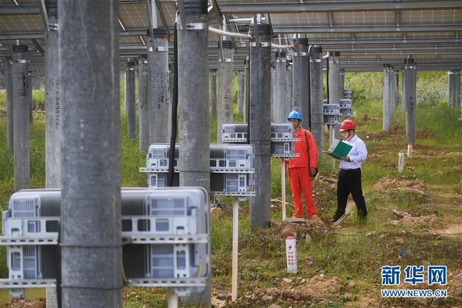 9月26日,工作人员在巡检湖州市埭溪镇东红村的光伏发电站。新华社记者 徐昱 摄