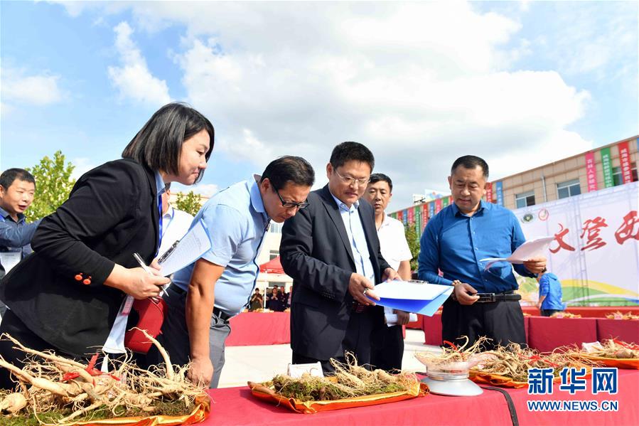 9月26日,在威海市文登区张家产镇,评委们在评判西洋参。新华社记者 郭绪雷 摄