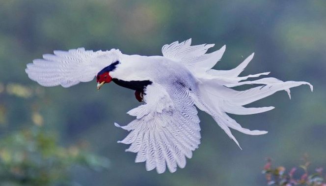 9月27日,一只白鹇在南靖县鹅仙洞自然保护区飞翔。