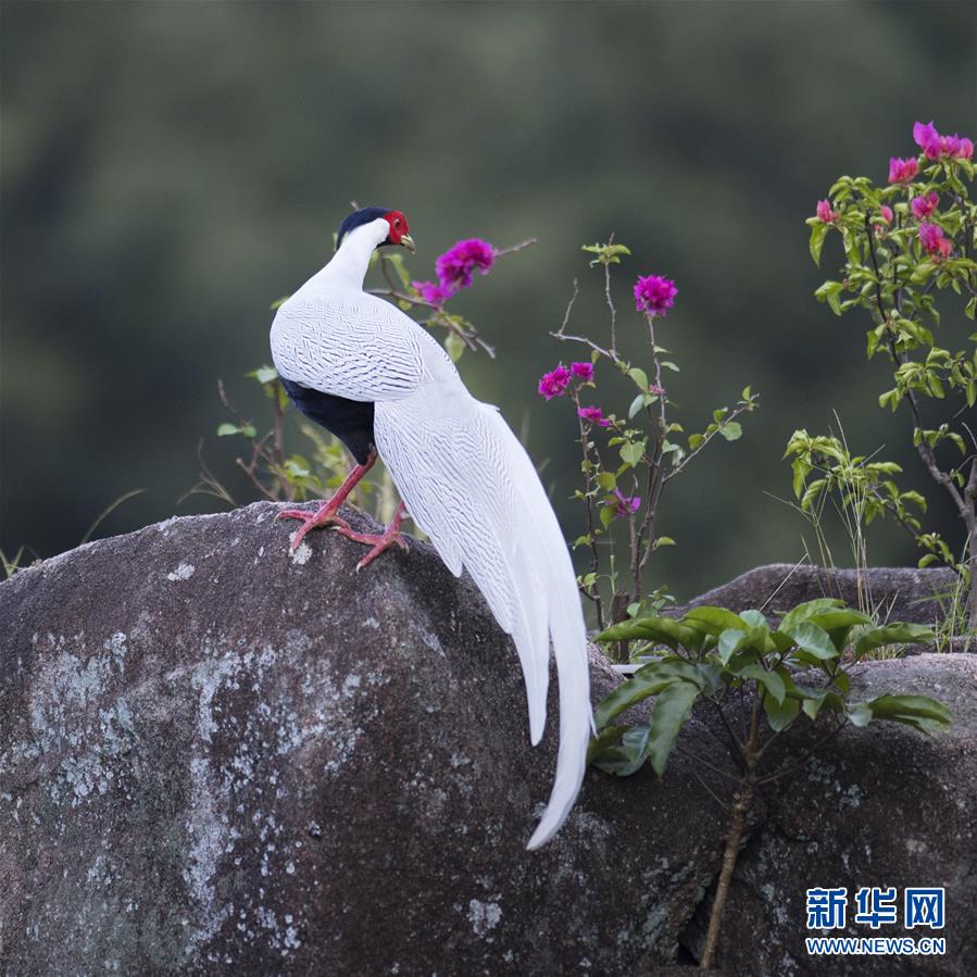 9月26日,在南靖县鹅仙洞自然保护区内,一只白鹇在山石上停留。 新华社记者 梅永存 摄