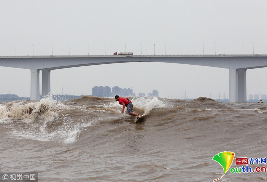 杭州:高手聚集钱塘江 上演冲浪对决