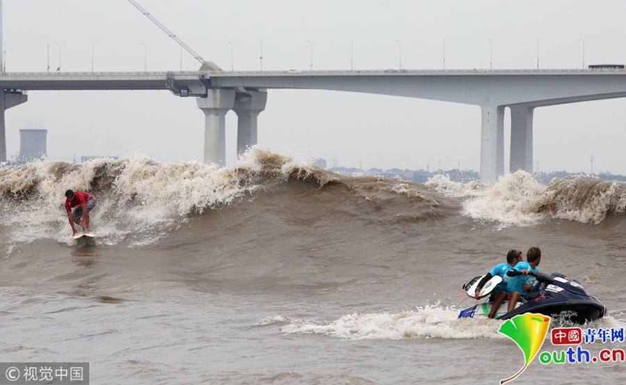 杭州:高手聚集钱塘江 上演冲浪对决