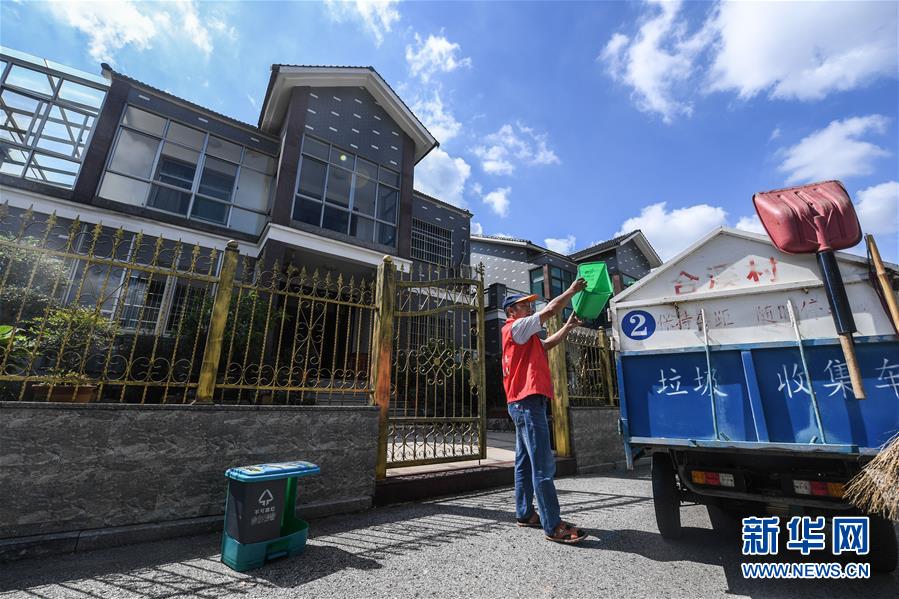 9月27日,小浦镇合溪村垃圾分类清运员符正芳在清运村民门口的分类垃圾桶,同时他还要用手机上的垃圾分类APP进行扫码签到,确保每天每户清扫到位。从9月初开始,浙江省长兴县小浦镇推广使用手机垃圾分类智能管理平台。通过这款APP可以进行村民垃圾分类情况打分、清运员每日签到、监督员巡查等,并能即时生成农户垃圾分类“成绩单”,所有农户均可通过APP查询垃圾分类排行榜,既方便又环保。新华社记者 徐昱 摄