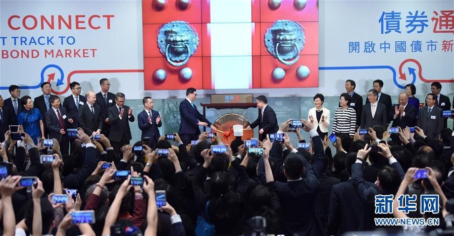 香港交易所举行“债券通”开通仪式(2017年7月3日摄)。 新华社发(王申摄)