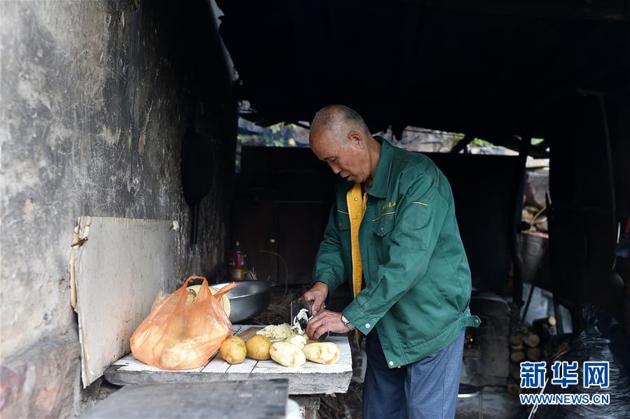 在黄崖洞烈士陵园,赵乃堂在做午饭(9月18日摄)。 新华社记者 詹彦 摄