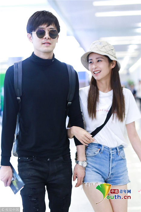 2018年9月26日,上海,颖儿、付辛博夫妇亮相机场。颖儿身穿白T恤和牛仔短裤露出纤细美腿十分养眼,一路挽着老公的手十分恩爱甜蜜,日前,颖儿还在节目上痛哭述说自己与付辛博新婚相处的苦楚。