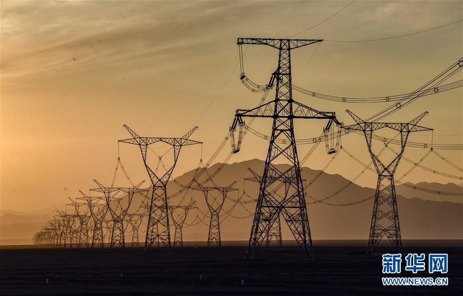 位于新疆鄯善县境内的一处750千伏输电工程(9月21日摄)。新华社记者赵戈 摄