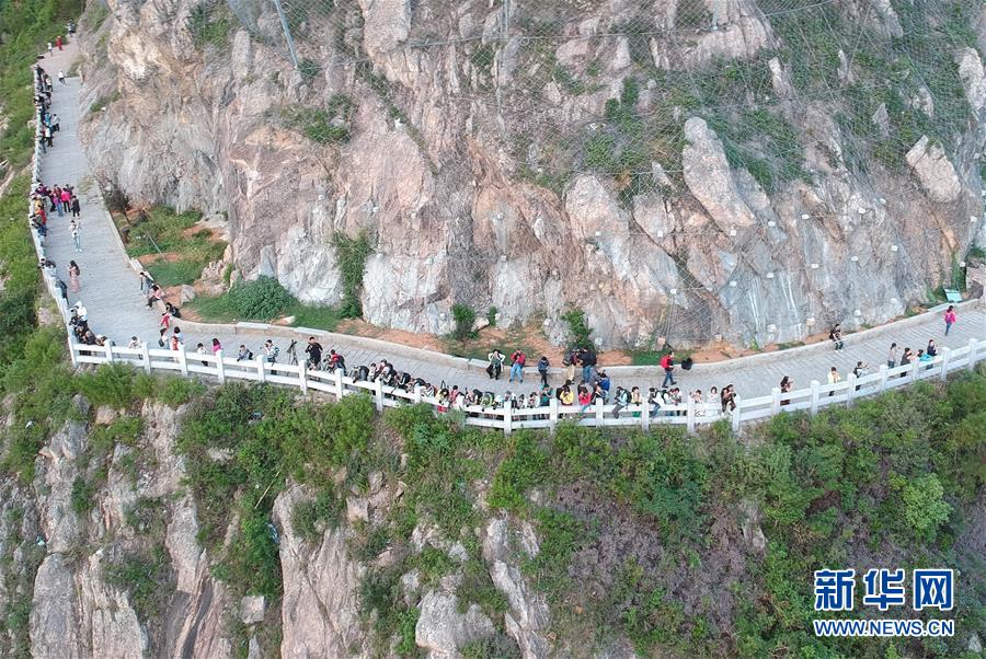 游客在霞浦县北岐摄影点参观(9月28日无人机拍摄)。 近年来,福建省霞浦县以“创建福建旅游强县”和“发展全域旅游”为目标,在进一步推动摄影旅游大发展的同时,还大力发展民宿等特色旅游产业。2017年全县共接待游客333.7万人次,旅游总收入25亿元。 新华社记者 林善传 摄