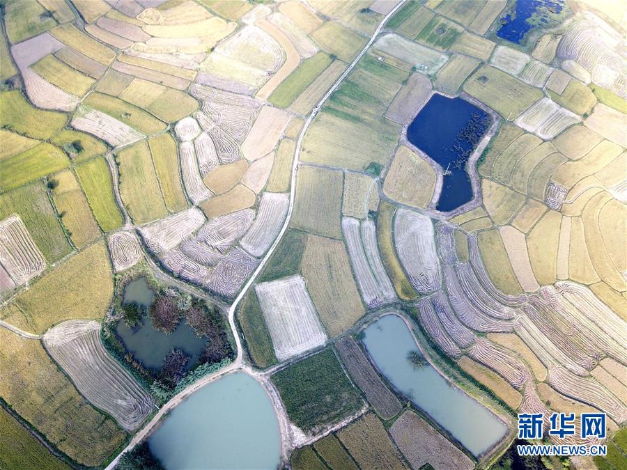 这是安徽凤阳小岗村稻田景象(9月27日无人机拍摄)。 新华社记者 张端摄