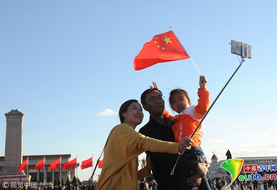 北京迎来高颜值好天气 游客纷纷在天安门广场拍照留影