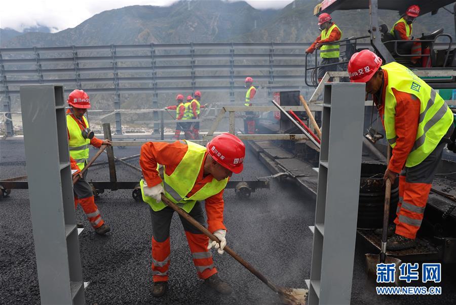 10月1日,建筑工人在雅康高速泸定大渡河兴康特大桥施工现场作业。当日是国庆节,许多劳动者坚守在工作一线,在岗位上度过节日。新华社记者江宏景摄