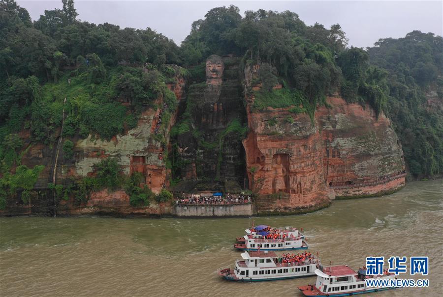 四川乐山大佛迎来客流高峰