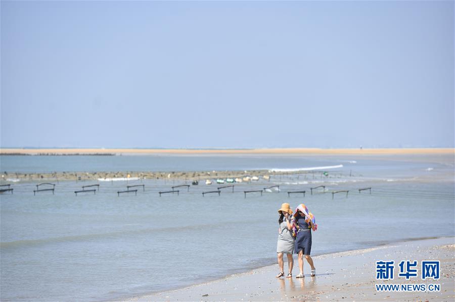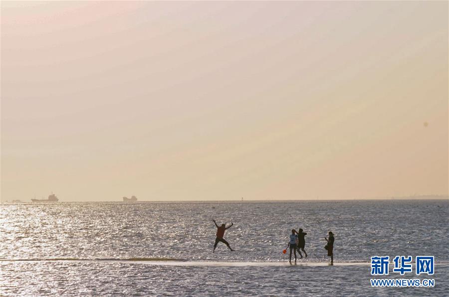 10月4日,游客在福建省晋江市金井镇塘东村海上沙堤休憩。新华社记者 宋为伟 摄