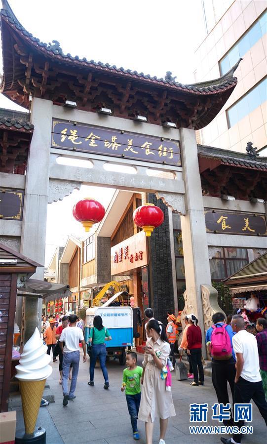 10月5日,市民和游客在铜官窑古镇游玩。 当日,“湖湘非遗文化体验展”在湖南省长沙市望城区铜官窑古镇举行,吸引众多市民和游客前去观展。展览汇聚600余件非遗文创产品,向人们展示了湘绣、剪纸、面塑等手工技艺。据悉,本次体验展将持续到10月7日。 新华社发(陈泽国 摄)
