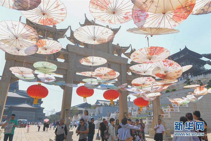 10月5日,游客在南昌市西湖区绳金塔风景区内游玩,来自全国各地的游客在此逛庙会,品美食,欢度国庆佳节。 新华社记者胡晨欢摄