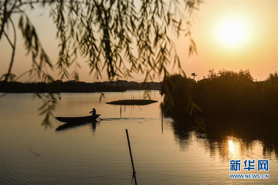 10月6日,塘栖镇河西埭村的村民划着小渔船行驶在河塘中。初秋时节,浙江省杭州市余杭区塘栖镇大片的稻田和波光粼粼的河塘构成了一幅水乡秋日美景。塘栖镇是千年水乡古镇,素来有“鱼米之乡”的美称。近年来,当地政府加大对河塘水体水质的治理以及基本农田建设,全镇4000多亩河塘水质得到提升,同时通过土地流转的方式恢复连片农田6000多亩,积极推进美丽乡村建设。新华社记者徐昱摄
