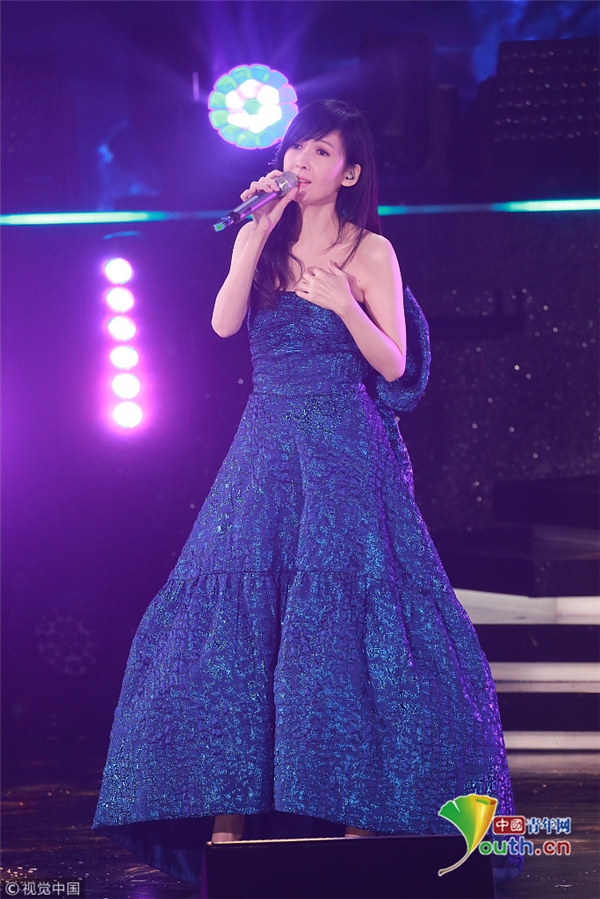 50岁周慧敏穿长裙深情献唱 皮肤姣好美貌依旧