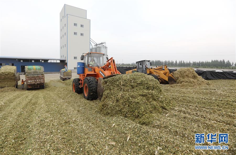 10月8日,工人在进行青贮饲料整理。 近年来,河北省故城县结合市场需求,通过“龙头企业+基地+农户”的经营模式,鼓励引导农民发展订单式青贮玉米种植,不仅增加了种植户收入,而且为养殖企业提供了优质饲料。目前,故城县已发展青贮玉米种植面积6万余亩。 新华社记者 朱旭东 摄