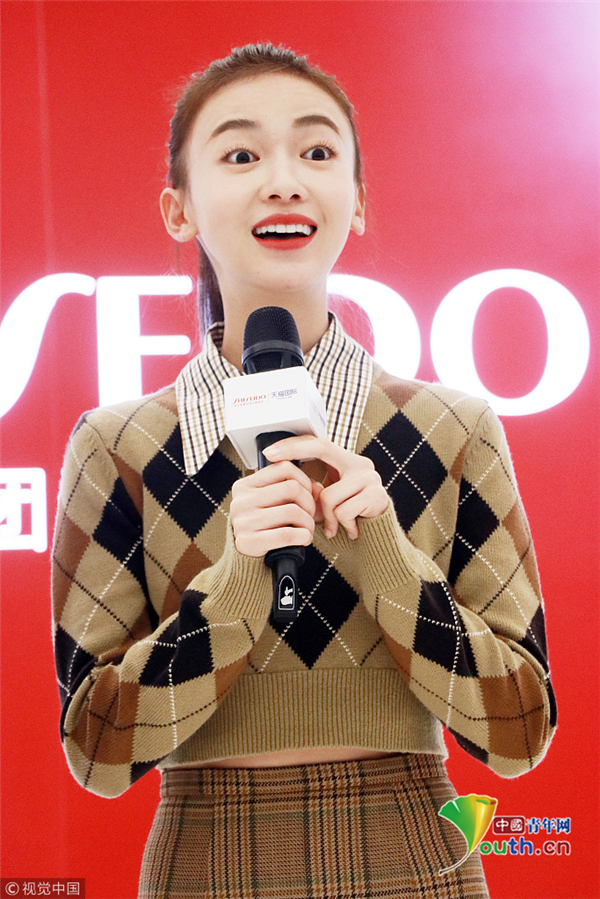 2018年10月8日,上海,吴谨言出席某活动。她穿学院风套装,高梳马尾嫩似小学妹,热聊粉丝甜笑比心少女范十足 。
