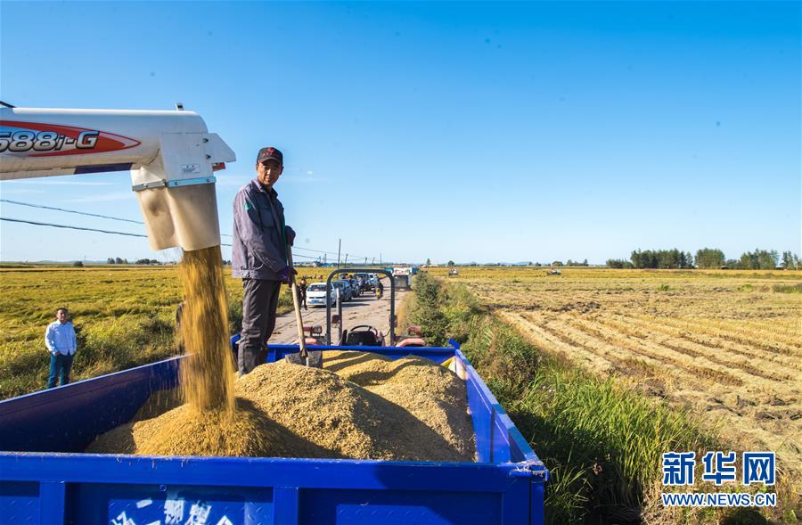 在吉林省吉林市一拉溪镇,农民在运粮车上整理收获的水稻(9月17日摄)。 金秋十月,位于“黄金水稻带”的吉林省喜迎丰收,全省1200多万亩水稻陆续开镰。 记者在吉林省水稻主产区走访发现,连年丰收的喜人图景背后,蕴藏着许多引人瞩目的“时代之变”。 新华社记者 许畅 摄