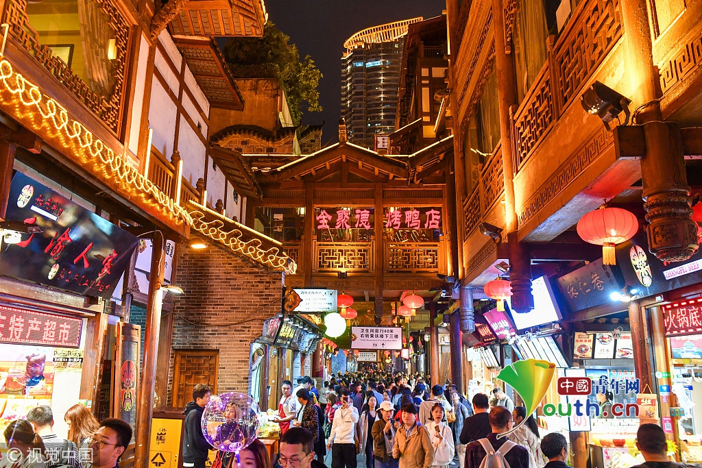 重庆网红景点游人如织 洪崖洞夜景辉煌