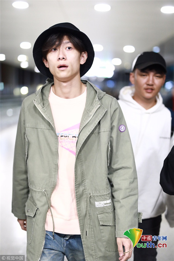 2018年10月14日,上海,张一山抵达上海机场。张一山戴渔夫帽眼袋严重瞬间老十岁, 用手挡脸似不愿上镜。
