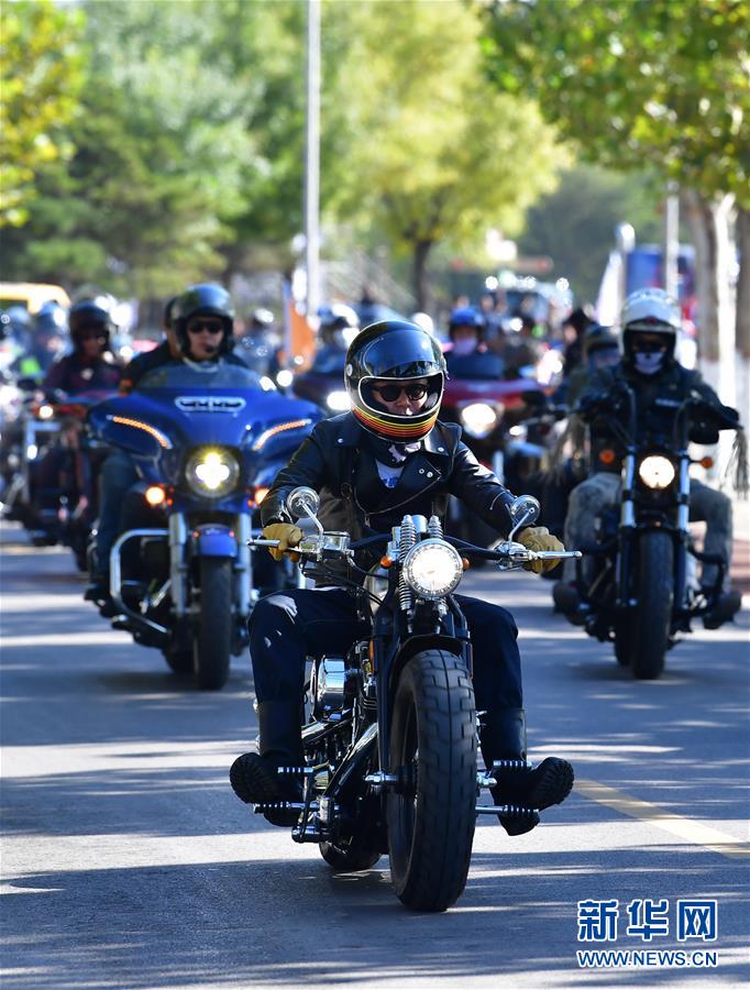 10月10日,骑手们在唐山市南湖公园丹凤朝阳广场出发开始巡游活动。