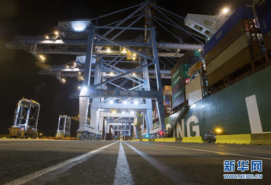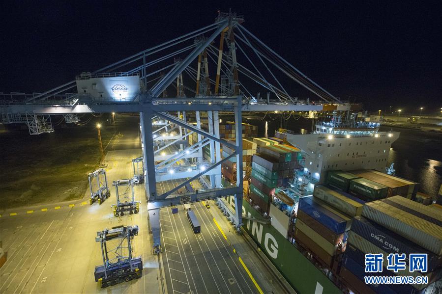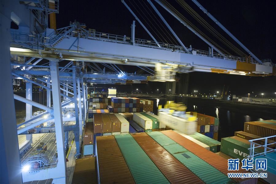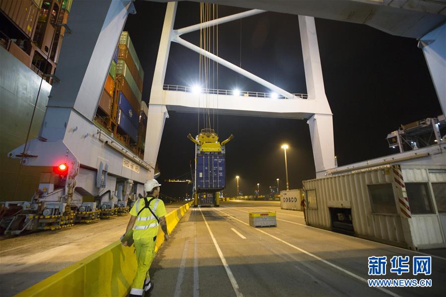 10月15日晚,吊车在比利时泽布吕赫港集装箱码头进行装卸作业。 新华社记者 叶平凡 摄